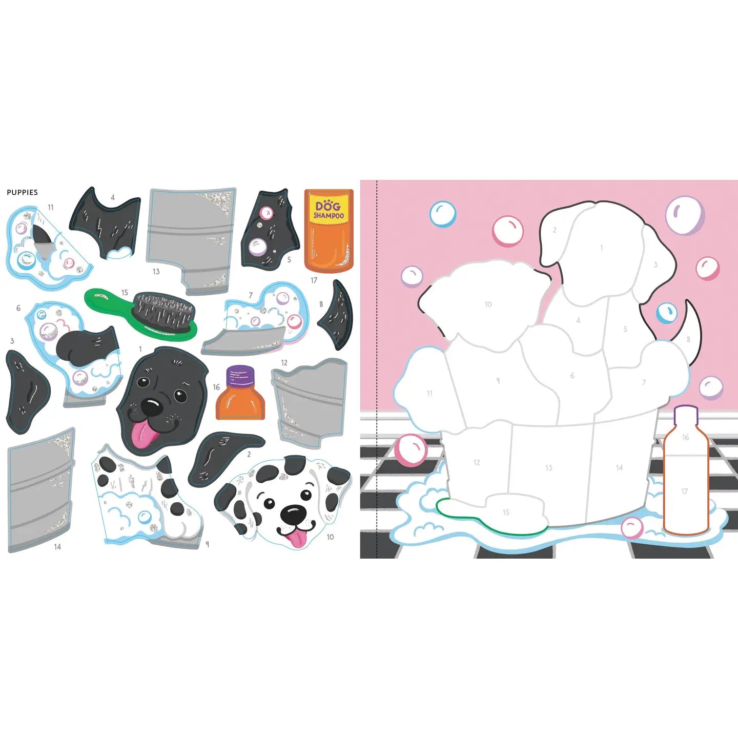 My First Color-by-Sticker Pets is perfect for young children who love sticker art -- and adorable animals! Sticker book comes with 14 pet-themed scenes to ''color'' with the stickers provided. Extra-large stickers are perfect for little hands! Simply place each numbered sticker on the matching number of each picture. Bright, full-color stickers bring each scene to life! Scenes feature puppies, kittens, bunnies, a turtle, and more!